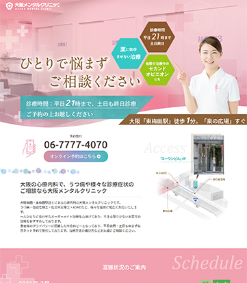 病院・心療内科:大阪メンタルクリニック様 EVOLUTIONアンケートシステムレスポンシブデザイン予約システムGoogleアナリティクス標準装備管理画面MODXキュレーションサイトECサイトコーポレートサイトWeb produce https://osakamental.com/